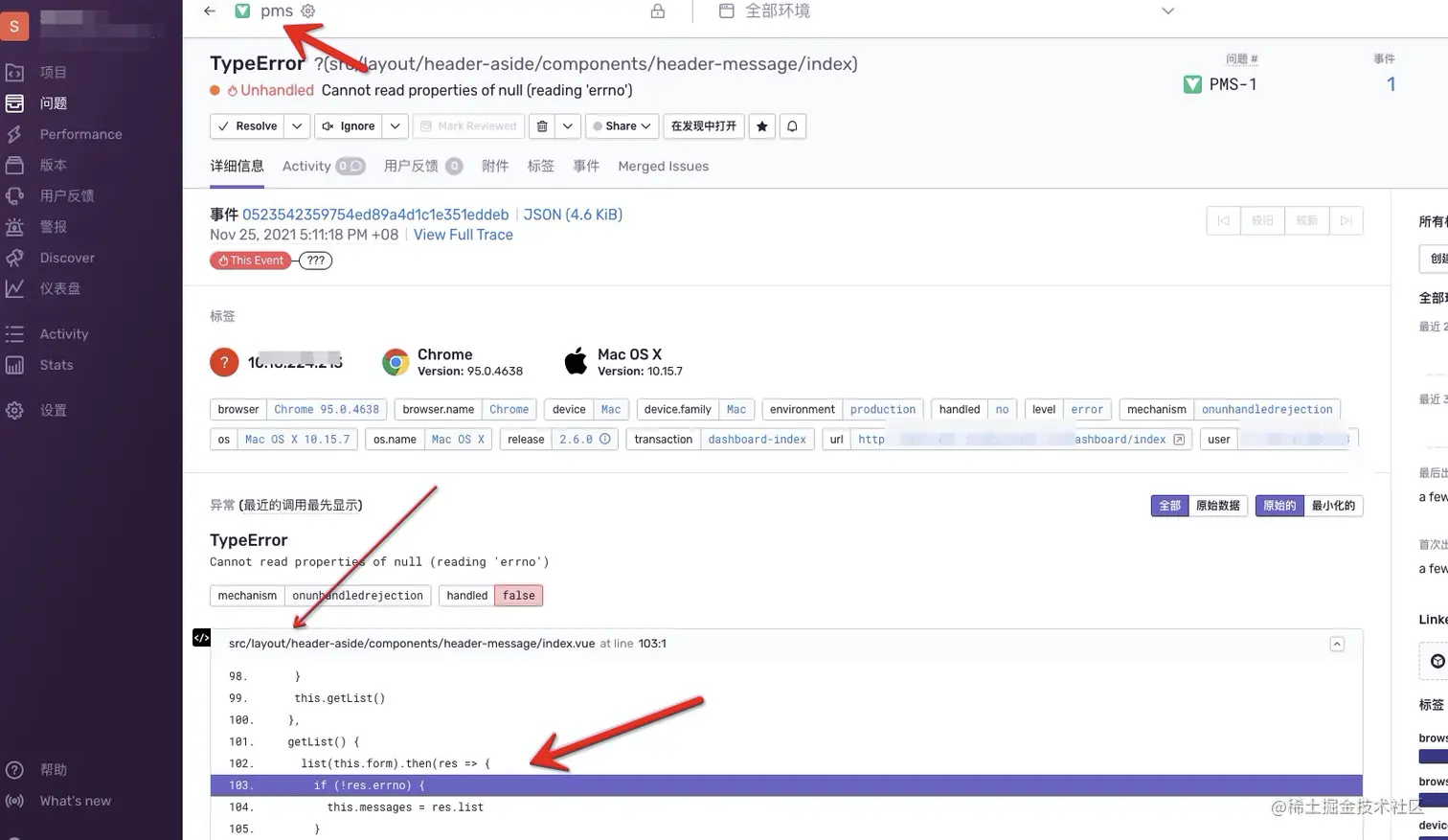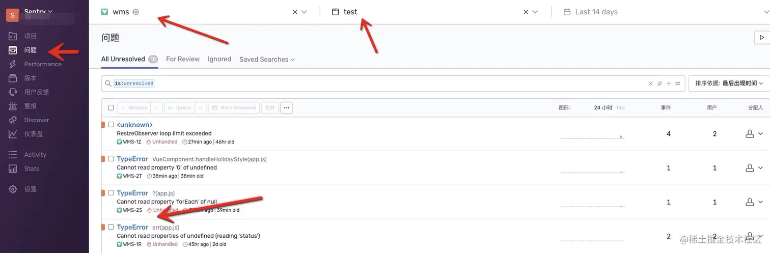 使用 Sentry.ErrorBoundary。加了错误边界,可以把错误定位到组件上面。