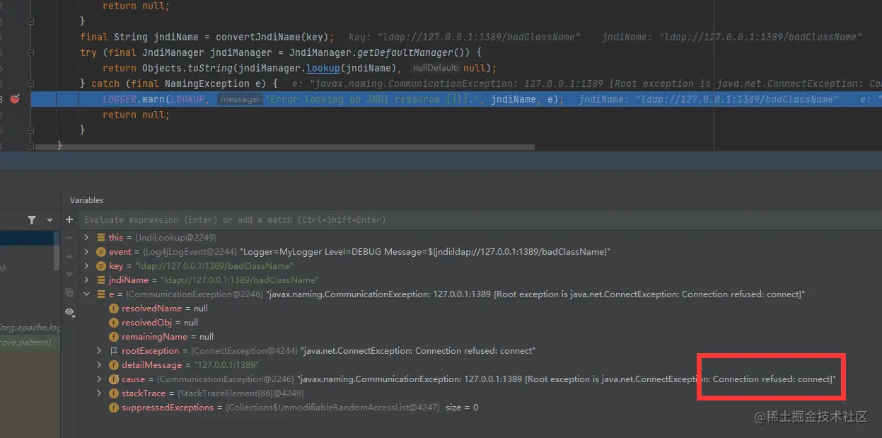 我想到lookup本质是网络相关的操作,会有阻塞的可能。可以构造出Payload使程序lookup本地,而本地不可能开LDAP Server,于是发生超时等待,也许会有拒绝服务漏洞的可能