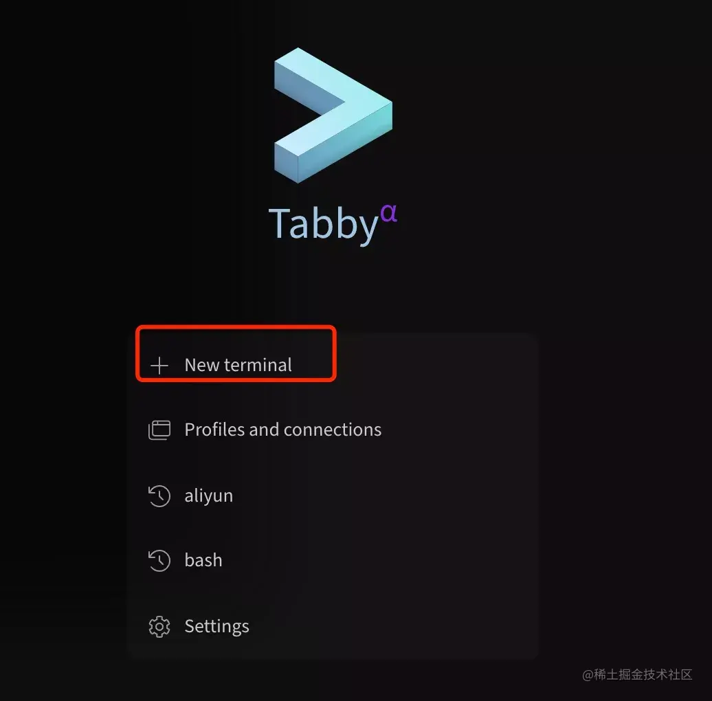 安装好后,将 Tabby 打开,它的页面是酱紫的,很简洁,很酷炫。