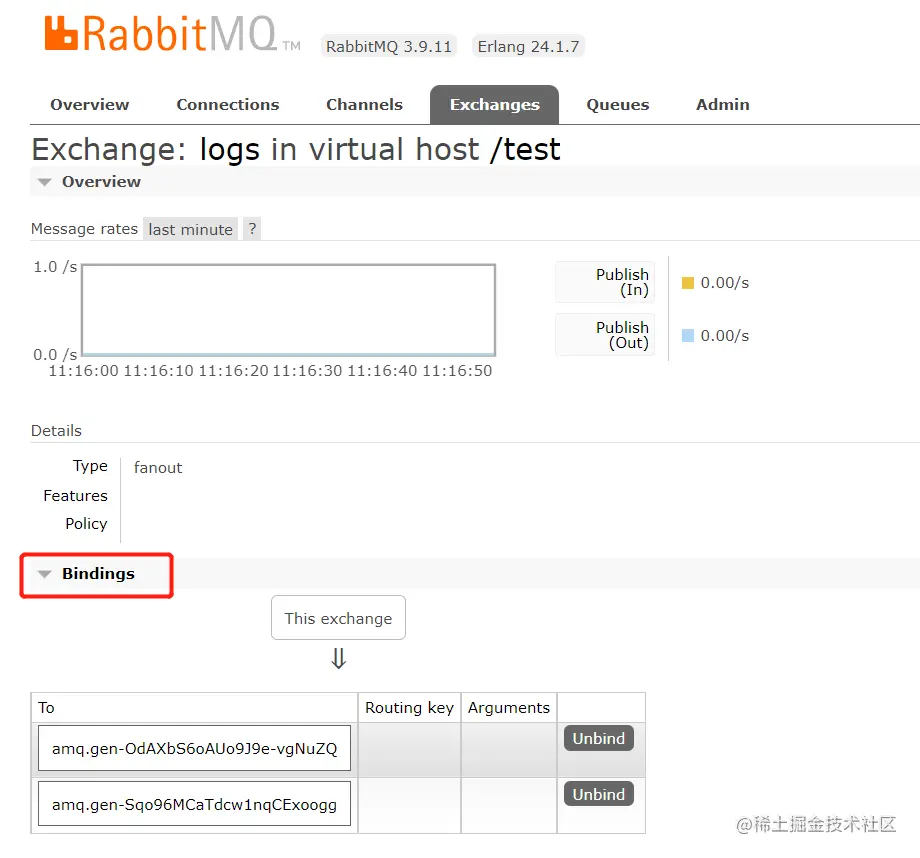 并且能看到有一个名为logs的exchange