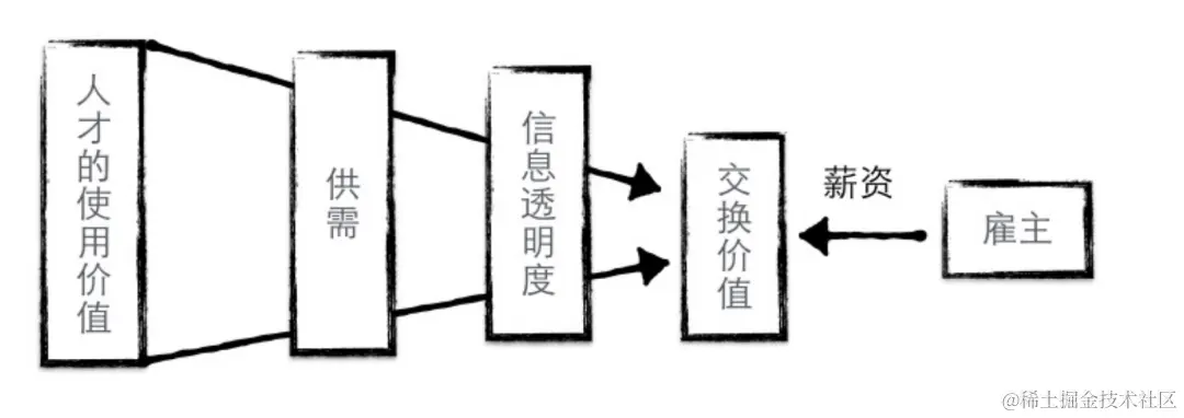 使用价值不是独立存在的,而是相对于使用者存在。所以我们程序员自己的价值,也是相对于公司而言的。有同学说,我技术很好啊,又会机器学习又会编译原理,凭什么那些写Javascript的薪水比我高一倍?谁让你在