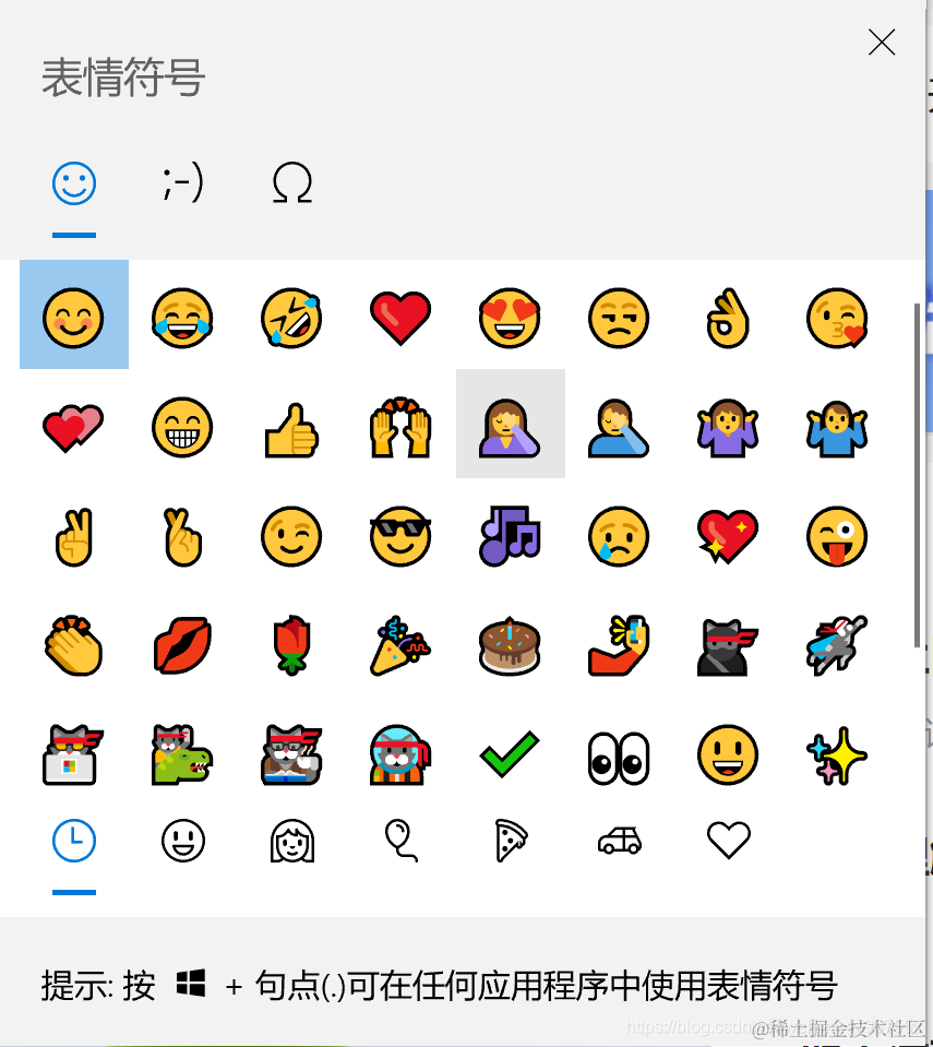 在各个PC端应用使用表情的快捷键,王大妈都开始用这个表情啦 孙叫兽 2021-12-16 422 阅读1分钟 很多人像在文章或者聊天使用表情,但是不知道如何输入,下面孙叫兽就来带你体验一下吧 快捷键 win+. 比如在微信聊天框使用win+. 就可以输入表情符号,颜文字及符号。 你们学废了?