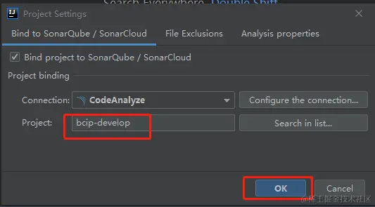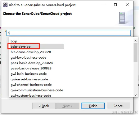 8) 绑定SonarQube项目,输入b,找到”bcip-develop”(重要:针对自助渠道项目):