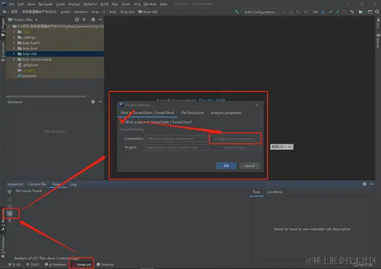 SonarLint可以不绑定SonarQube项目进行代码扫描,使用的是插件自带代码规范。与公司代码质量扫描规则不一致,扫描结果不同,故建议绑定公司的SonarQube项目后进行代码扫描。