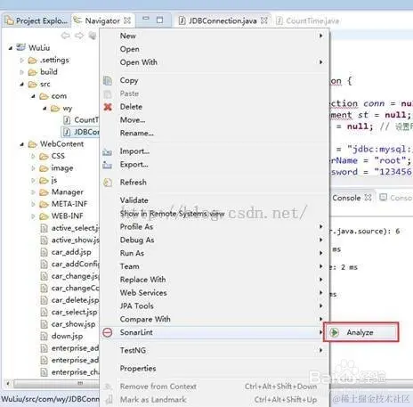 手动审查:右键审查文件->SonarLint->Analyze分析文件,如下图所示: