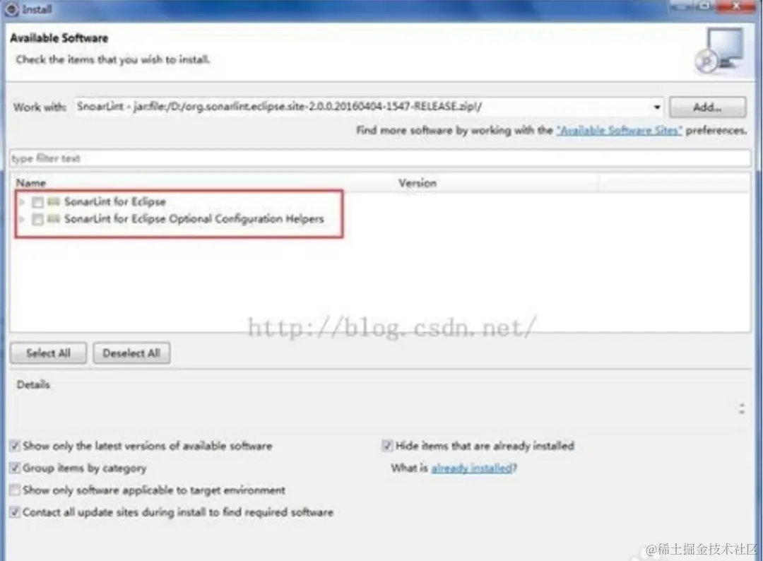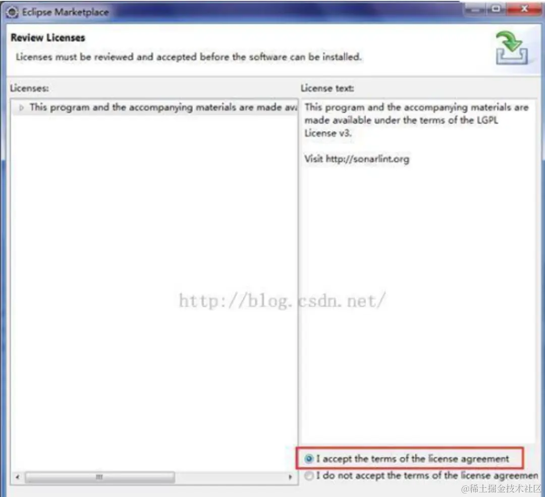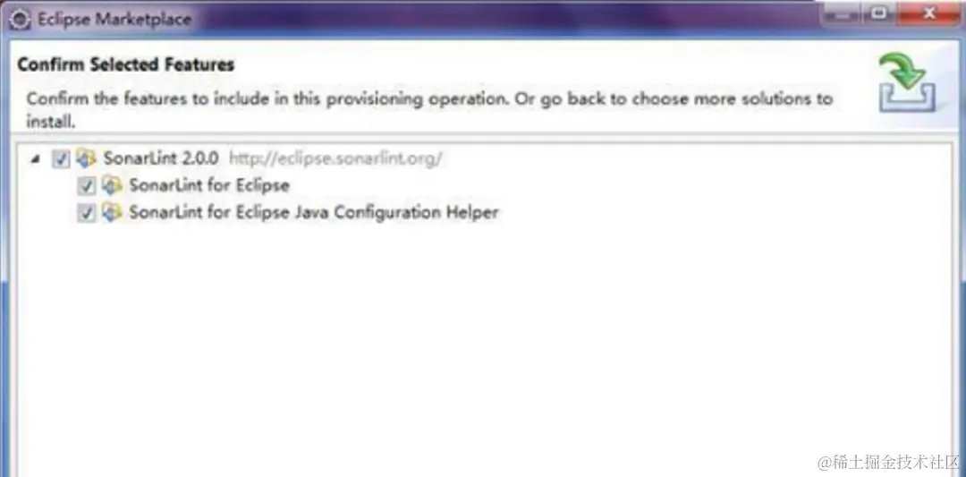 弹出EclipseMarketPlace界面,在Find栏输入sonar就可以搜索出sonar相关的插件,选择SonarLint 5.5.0.23614 ,Install->Confirm->选择同意协议->Finish,如下图所示: