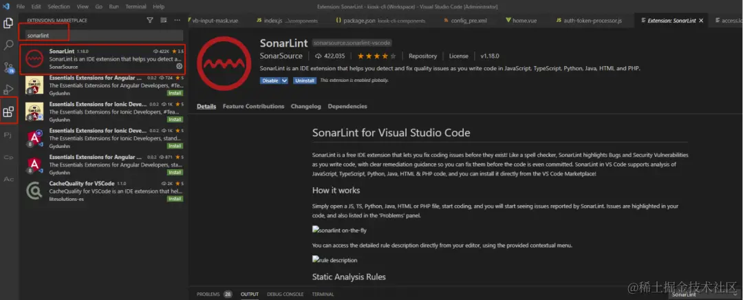 大家按以下文档安装开发工具对应的代码检测插件,请大家务必重视、执行.这里只介绍前端开发VSCode,后端开发Eclipse,两种代表性的编译器安装sonarLint+sonarqube方法,其它编译器同理.