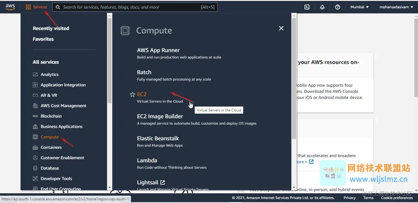 转到AWS EC2 网站并创建一个免费试用帐户,登录 AWS 控制台后,您可以在“服务”选项卡下查看所有可用服务。