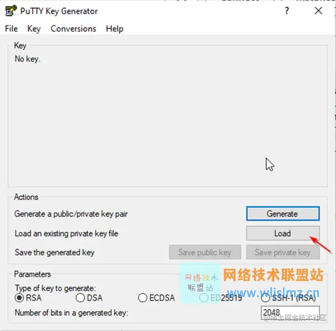 打开“Putty Key Generator”并.pem从您下载的位置加载文件。