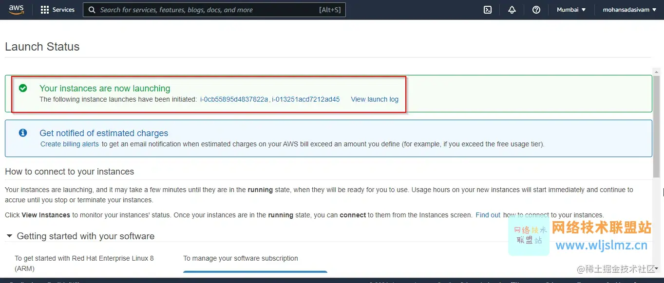您的 Amazon EC2 实例将立即启动。