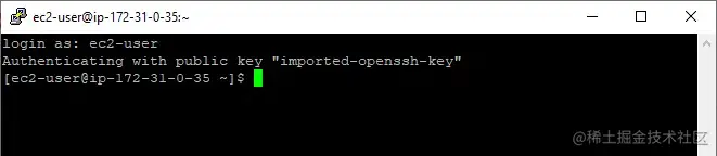 恭喜!我们已经通过 Putty 成功连接到 RHEL 8 实例,默认用户名是“ ec2-user ”。