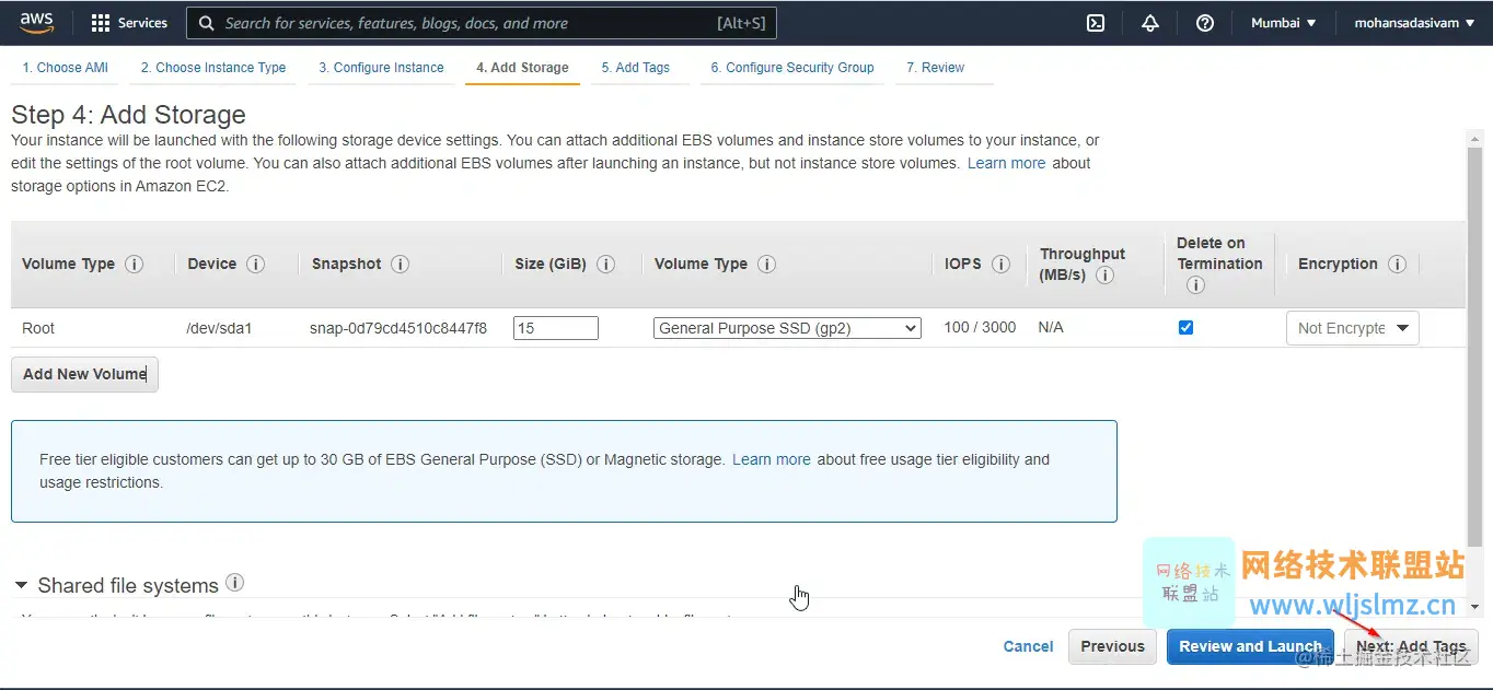 标签是您应用于 Amazon Web Services 资源的标签。在这里,我们将实例标记为“OSTechNix”。
