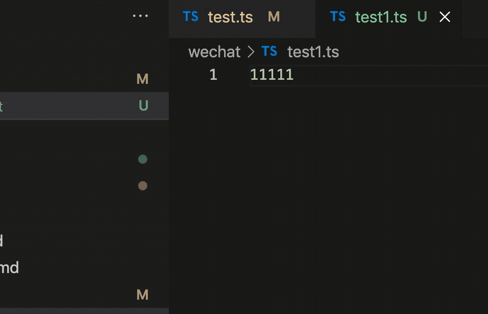 鼠标单击选择:右侧打开文件窗口,顶部title文本为斜体,再次单击其他文件时,会替换当前打开tab