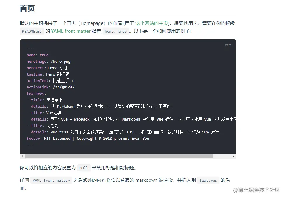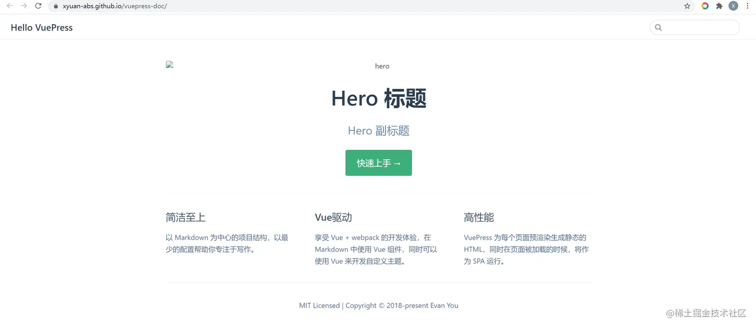 details: 享受 Vue + webpack 的开发体验,在 Markdown 中使用 Vue 组件,同时可以使用 Vue 来开发自定义主题。