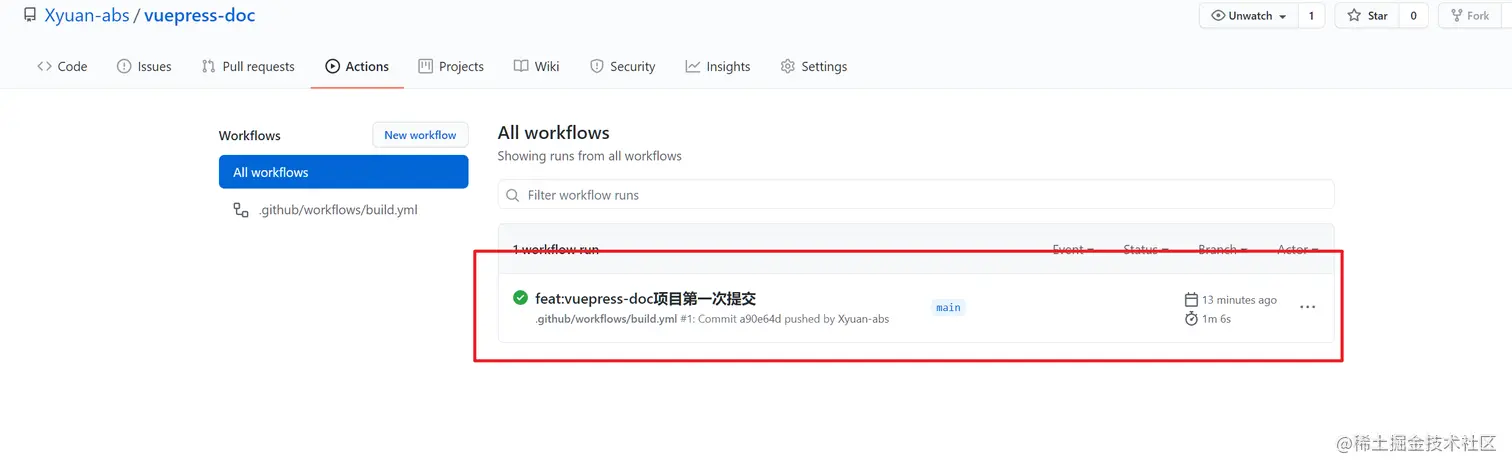 此时提交代码就会自动部署,进入github查看