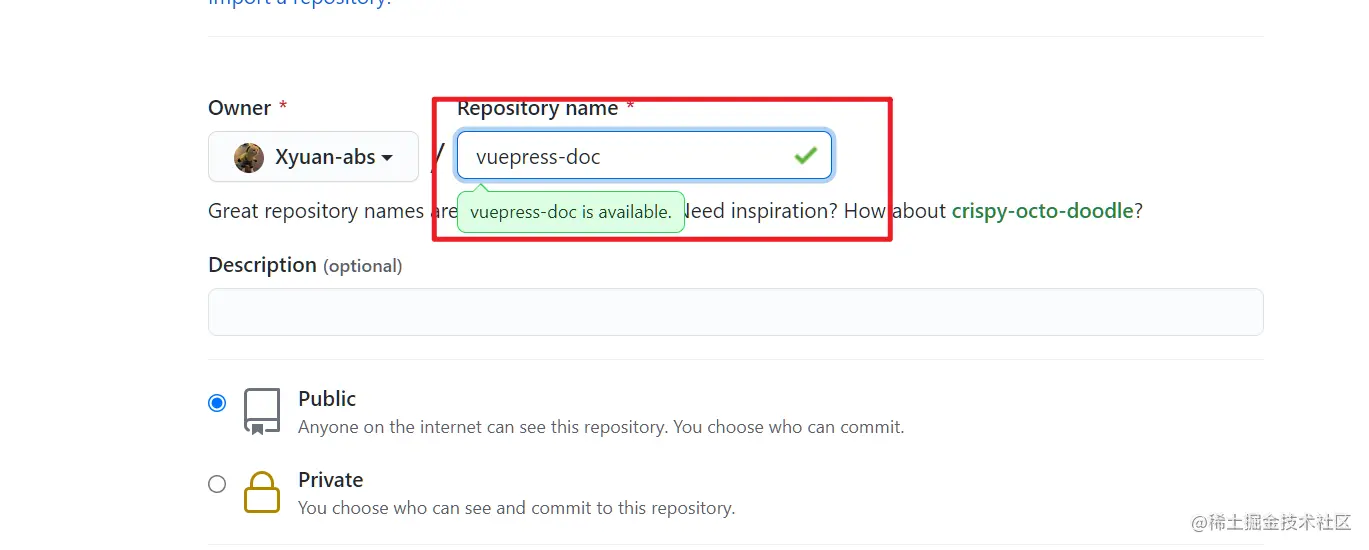 首先在github上创建仓库,如果建立的仓库名称是username.github.io,则最后访问的地址username.github.io/。 如果不是这个名称,则最后访问的地址是username.github.io/repo/ ,repo就是仓库名字,此时还需要先修改.vuepress/config.js,该文件导出一个对象,增加base的配置项,值为“/repo/”。