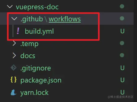 在项目根目录下创建 .github/workflow/[文件名].yml ,文件名可以是任意,以下为build