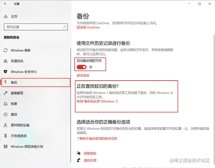 如果你还没有打开电脑内置的备份,可以打开设置窗口,单击左侧的备份,开启右侧的自动备份。你也可以安装第三方备份软件,进行重要文件的备份。