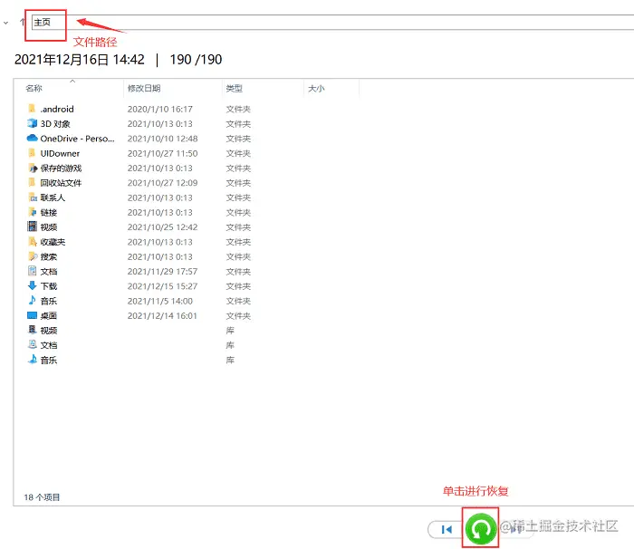步骤三:进行文件的恢复,文件会被恢复到原本的位置。