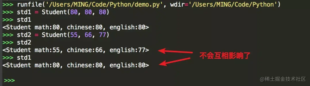 探其根因,是由于此时 math,chinese,english 三个全部是类变量,导致 std2 和 std1 在访问 math,chinese,english 这三个变量时,其实都是访问类变量。