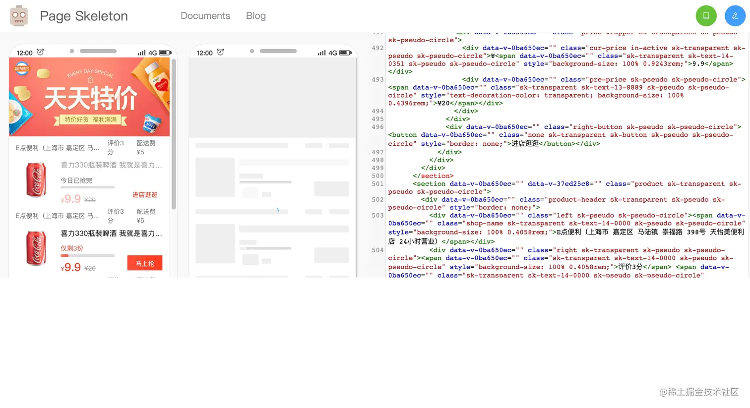HTML和CSS样式提取出来,这样就是骨架屏了。