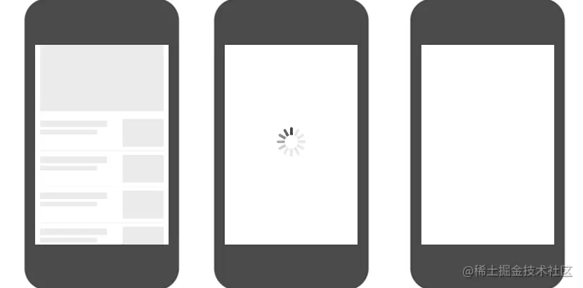 还有,在页面启动后,我们可能还是会通过 AJAX 获取后端数据,这时候我们也可以通过 骨架屏 来作为一种加载状态。也就是说,其实我们可以在「非首屏骨架屏」上做一些工作。