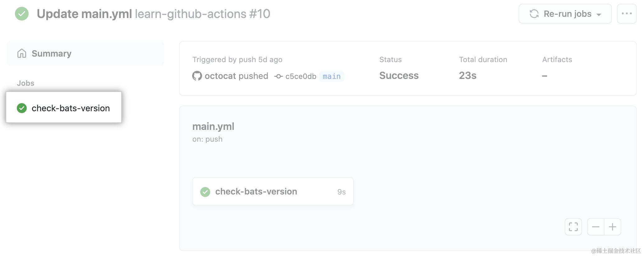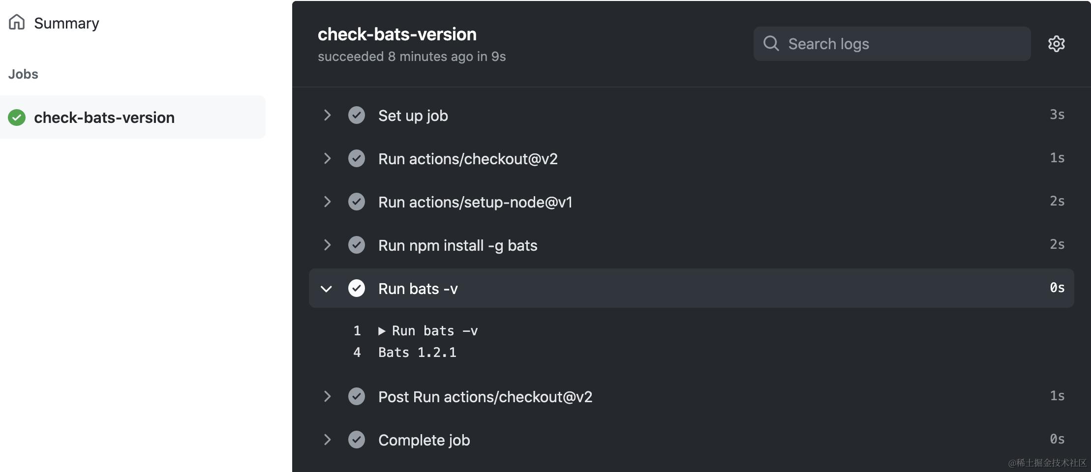 将 check-bats-version 任务下的所有步骤分为一组,嵌套的每一个条目都是一个独立的 action 或者 shell 脚本。