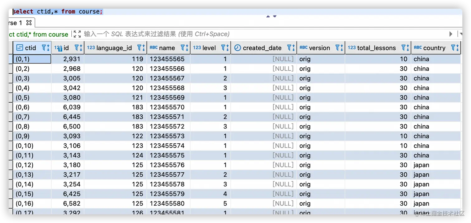 select ctid,* from course;