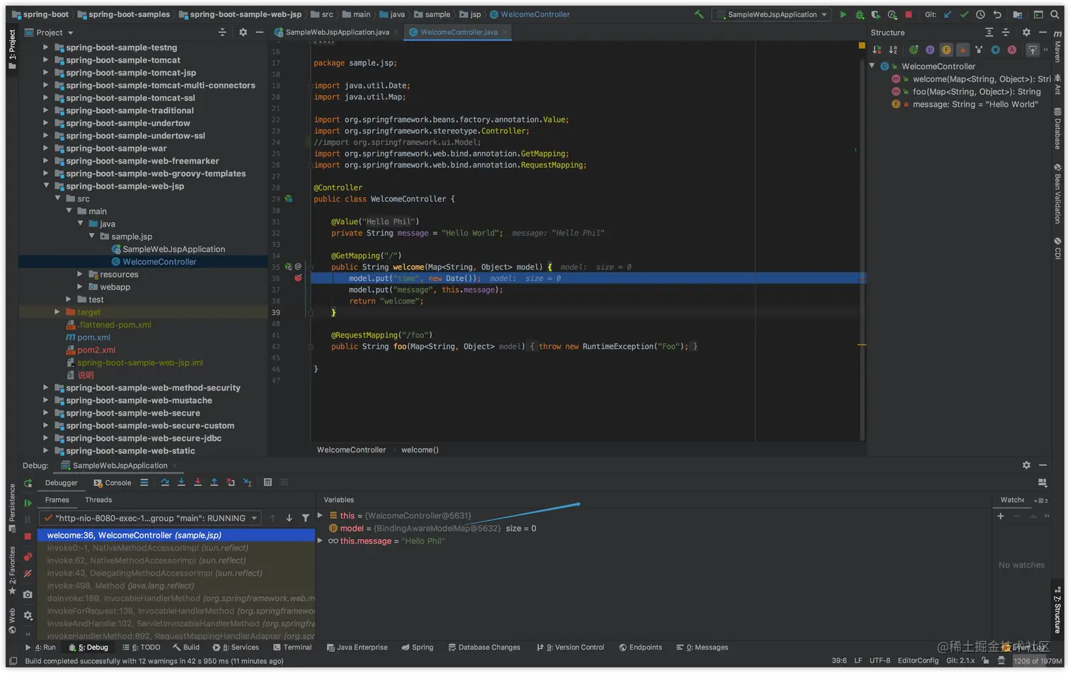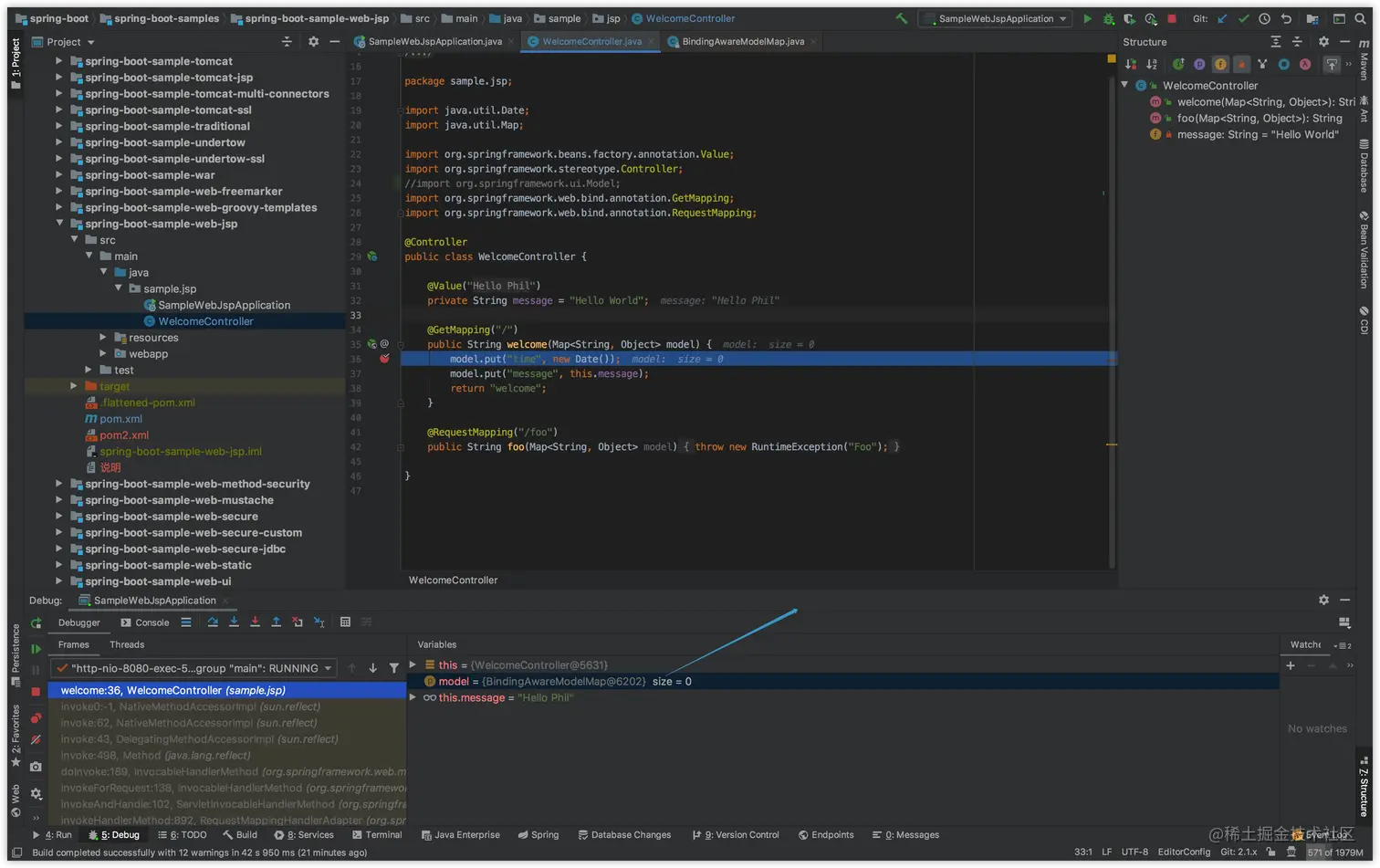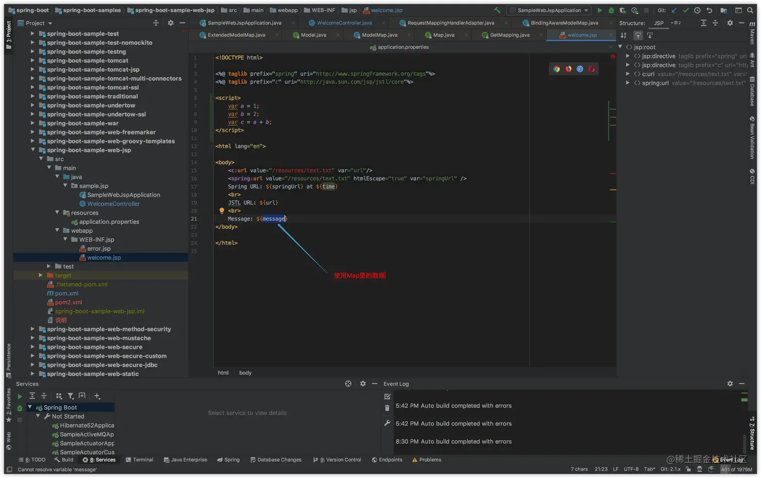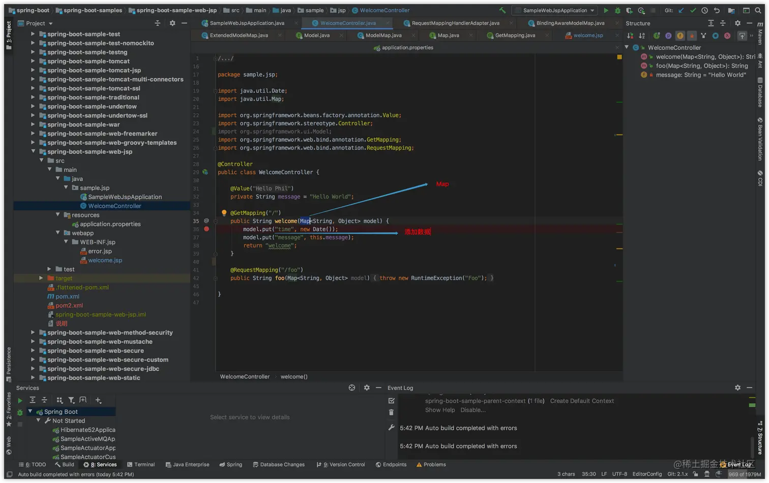 这个是springboot官方demo里的代码,写数据到Map之后——就可以给前端页面读了。