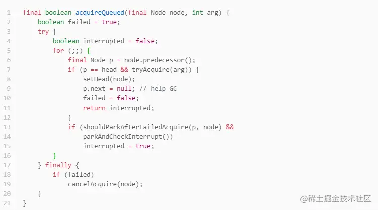 当failed为true时才会执行方法cancelAcquire,那什么情况下failed为true呢?try代码段执行过程中出现异常。