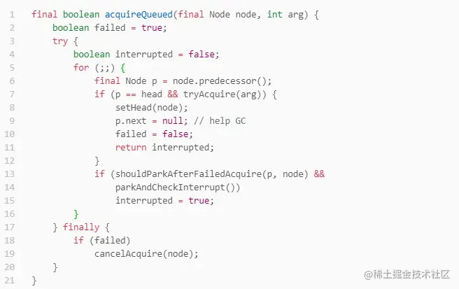 尤其是cancelAcquire何时会运行,最近讲完AQS课被问得比较多。今天抽个空写篇文章分享下。cancelAcquire这个方法内部做了什么,后面写文章分享,这个方法的代码也很难理解。
