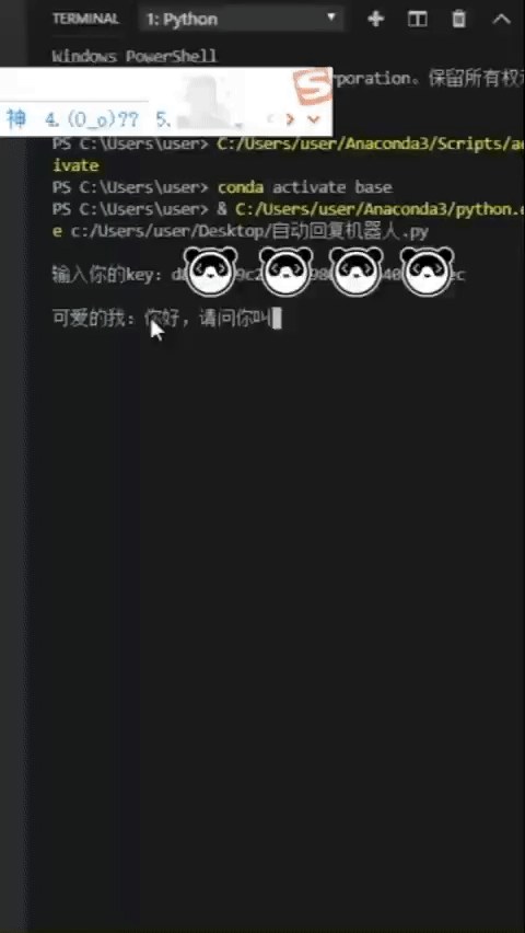 现在你知道怎么获得一个简易的聊天机器人了吧?它可爱,幽默,知识储备丰富,当你需要它的时候,它时刻都在,是Python赋予你的魔法。