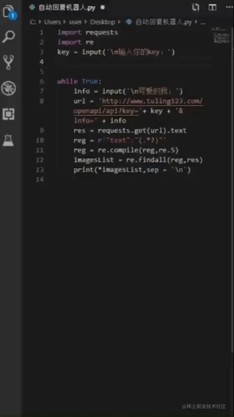 需要去注册图灵机器人,申请一个Key,运行后输入。