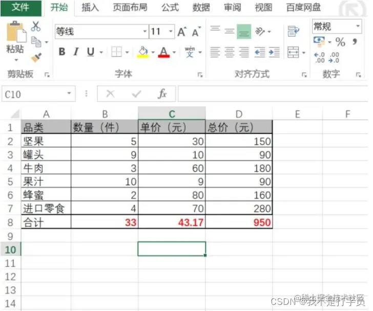 [['品类', '数量(件)', '单价(元)', '总价(元)'],