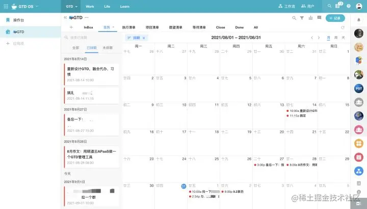 对明道云非常熟悉的朋友应当能依据此需求,快速构建这套操作系统了。这一套实现逻辑是以下大家可以看到的结果。至于为什么需要这样来实现,有没有其他方式,可以关注下一篇原理篇的文章,这一次我先带领大家看看可用的GTD OS长什么样!