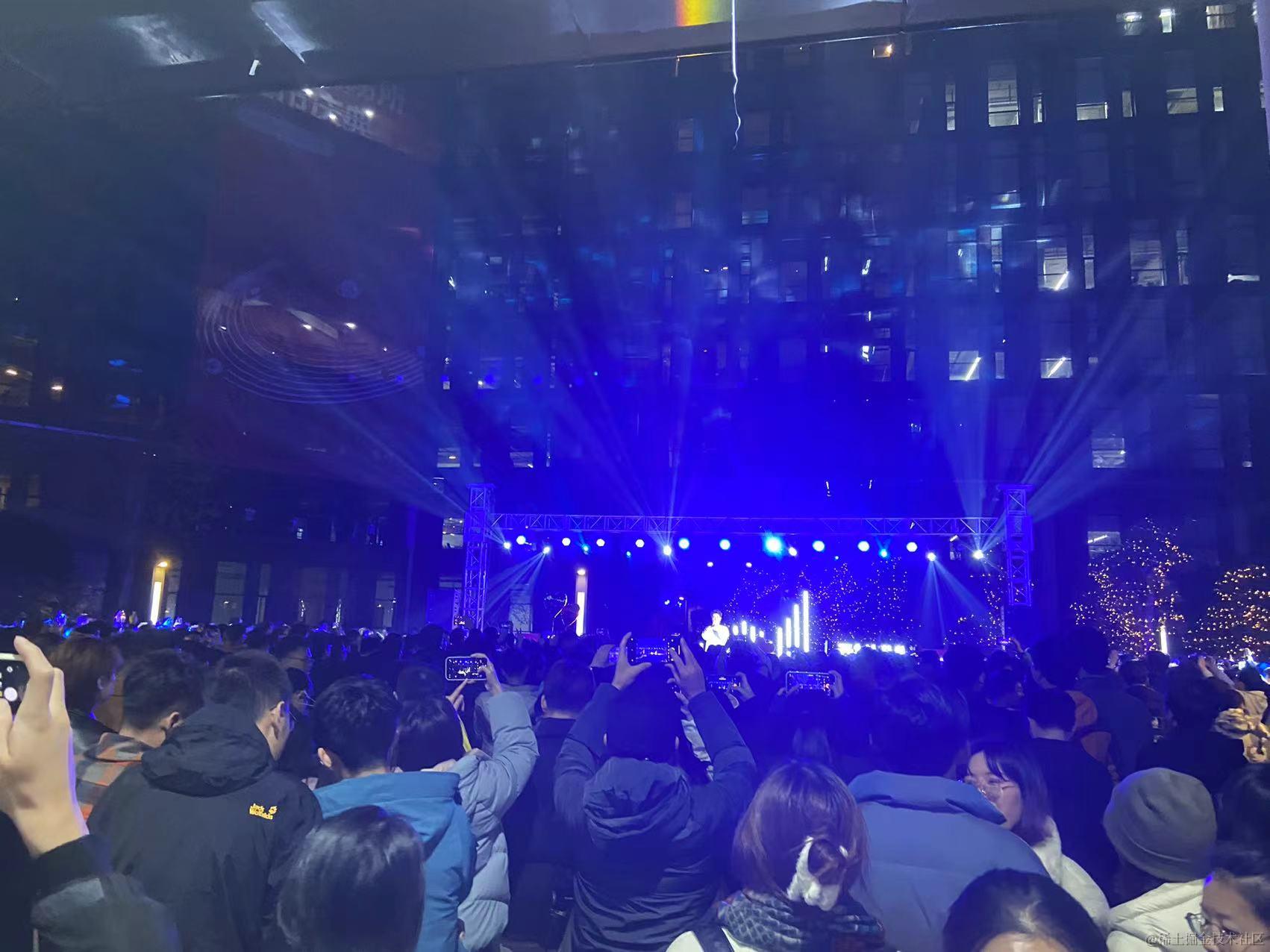 由于,我在的是音乐事业部(网易云音乐),碰巧在入职第 3 天见证了它的上市。IPO 那天晚上,公司还请了一些音乐人在园区内表演,作为程序员的我很自然地拍了一张照,然后上楼写代码...
