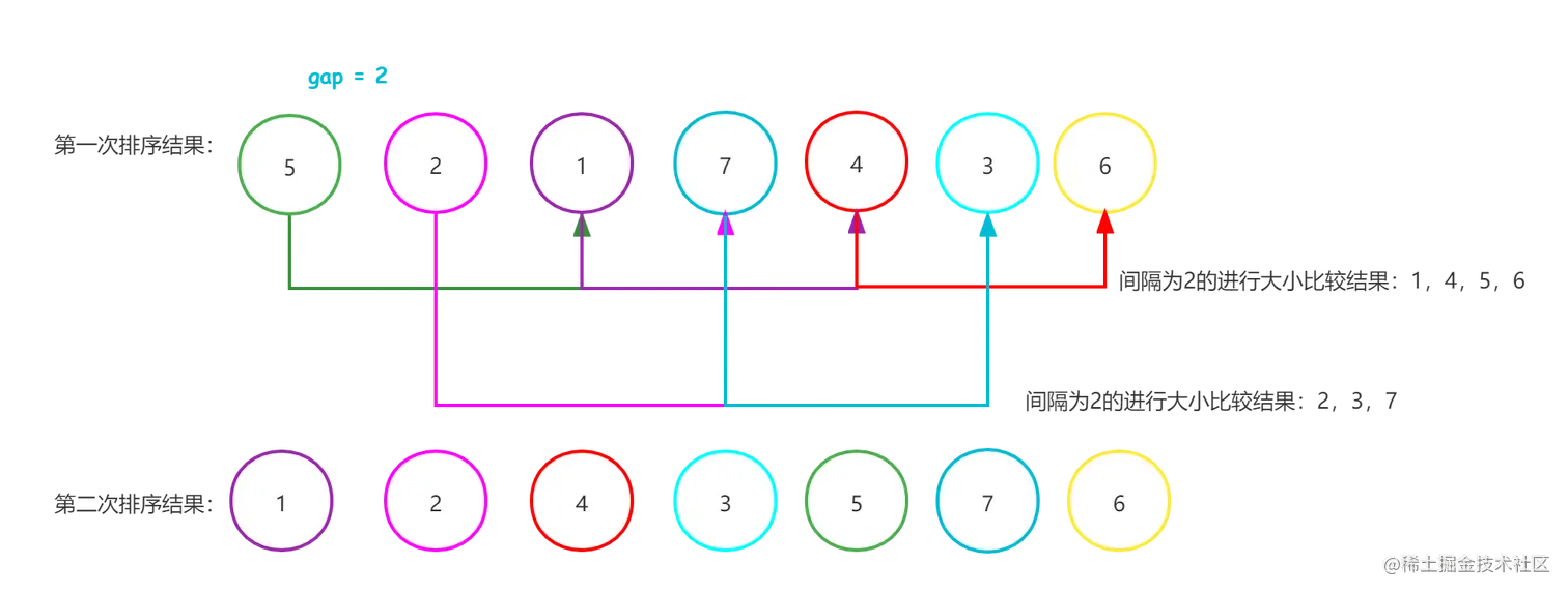 稳定性: 希尔排序的分组导致不同组间的相同数字可能会调换位置,所以希尔排序是不稳定的排序算法。