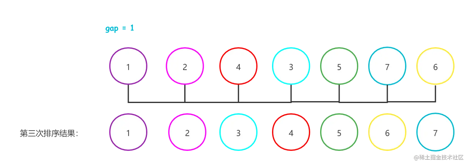 - 依次进行下去,直到所取增量 gt = 1,所有记录在一组中进行插入排序。