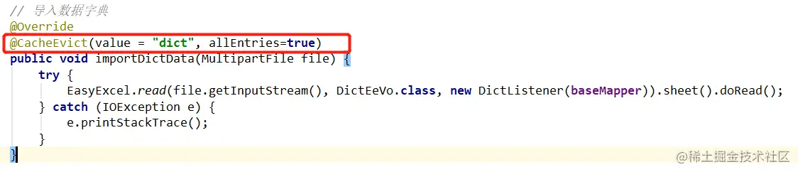 改造之前的字典功能,加入缓存相关操作,在查询和导入(新增)的操作上增加对应注解。