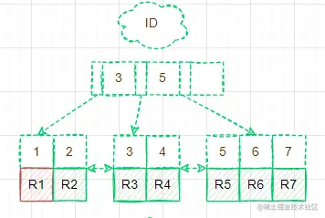 - 2.继续到主键索引树查找ID=1对应的数据R1, 返回到结果集中。