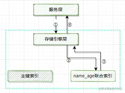 idx_age为非聚簇索引,索引的叶子节点为年龄+主键Id,顺便提一下,不知道你有没有考虑为什么该索引的叶子节点不直接挂的是行记录呢? 我想原因有二:1.主键已经有行记录,再次存储占用额外的空间,如果二级索引更多,存储冗余就更大 2.mysql的存储以page为存储单元,如果单索引键空间占用更多,一个page能容纳的键更少,导致树更深,检索需要更多的IO访问。