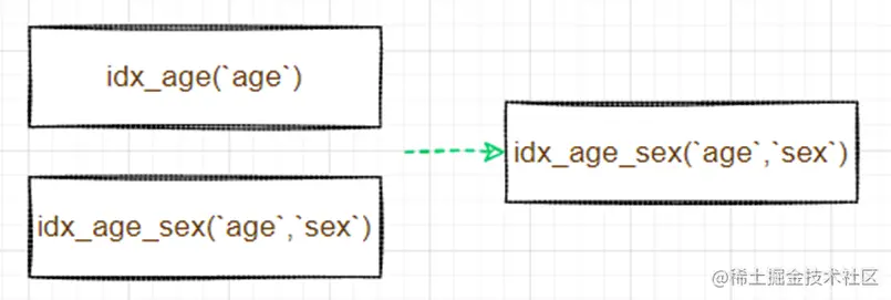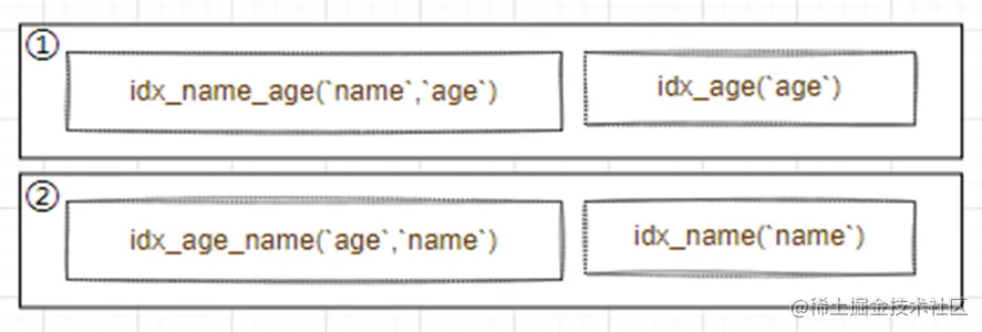 因此,综合所有该表的SQL的查询条件,合理规划索引的个数,避免冗余索引的出现,有助于降低维护成本。比如下面的索引,可以将左图两个索引优化为右图一个索引: