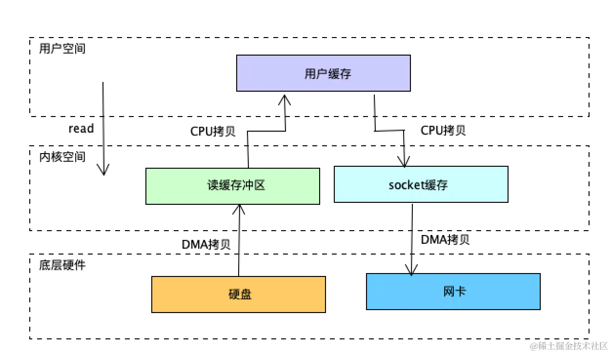 经过2次DMA拷贝+2次CPU拷贝