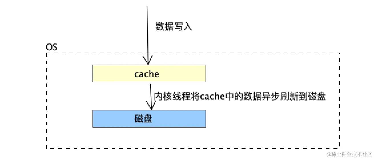 随后通过异步的方式由pdflush内核线程将Cache内的数据刷盘至物理磁盘上