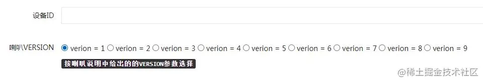 由于喇叭硬件的变动,可能带来接口的变动,用此参数区分,要求开发者后台预留(1-9)个版本选项,喇叭机身的标签中,会注明对应的version