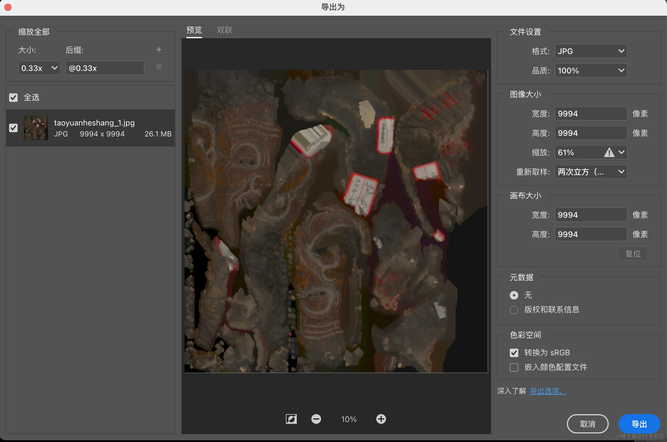.jpg依旧很大,但是其他两个模型文件会很小,才几百KB