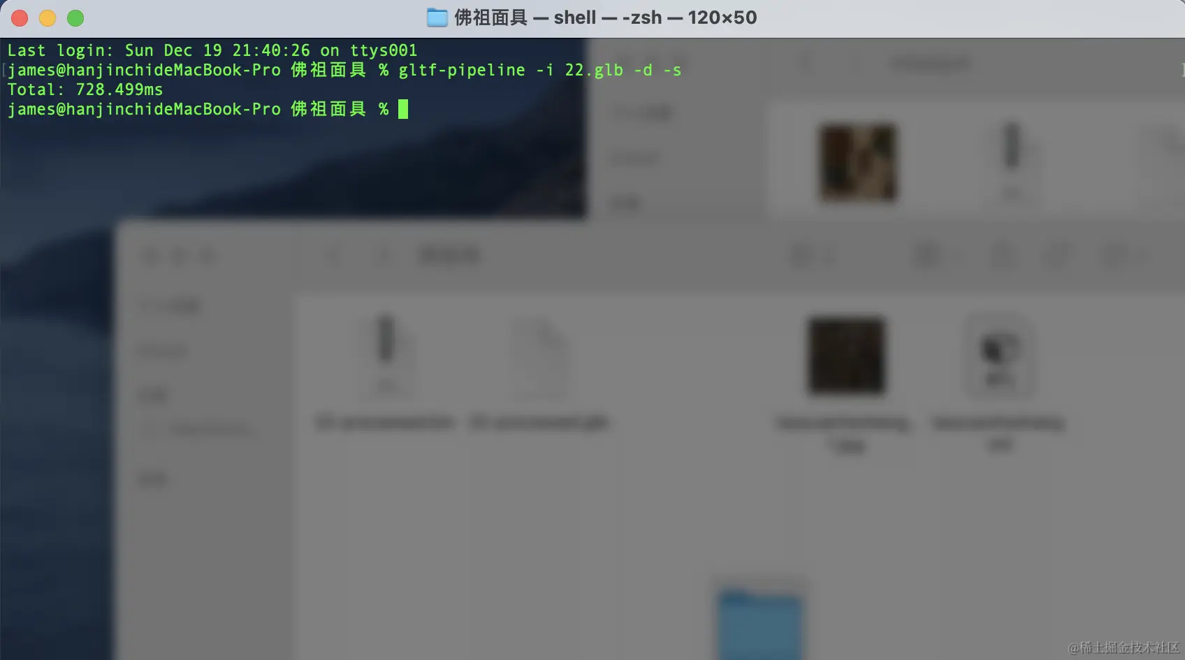 确保环境安装没问题后,执行gltf-pipeline -i 22.glb -d -s命令