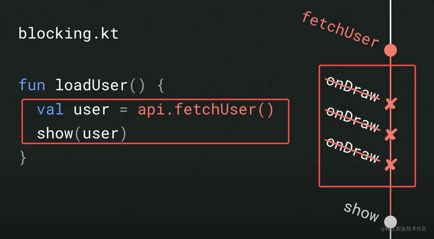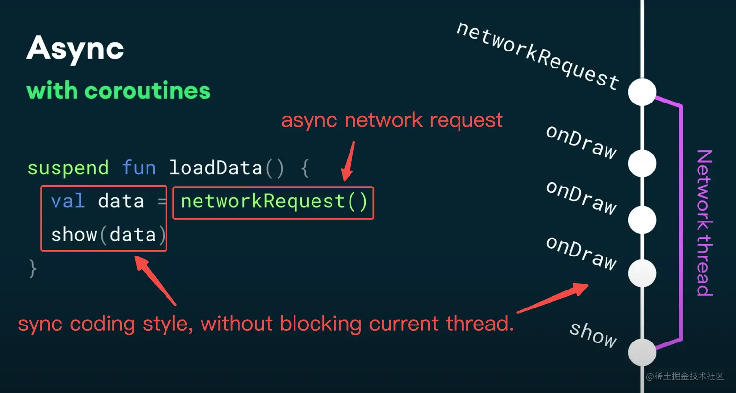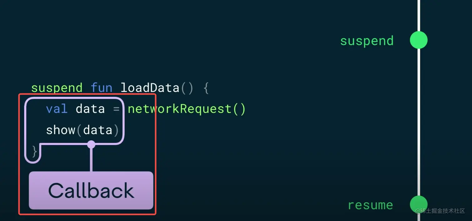 - 很简单,就一个关键字: suspend🪄. 那suspend又是什么? 见后文核心概念: Suspend