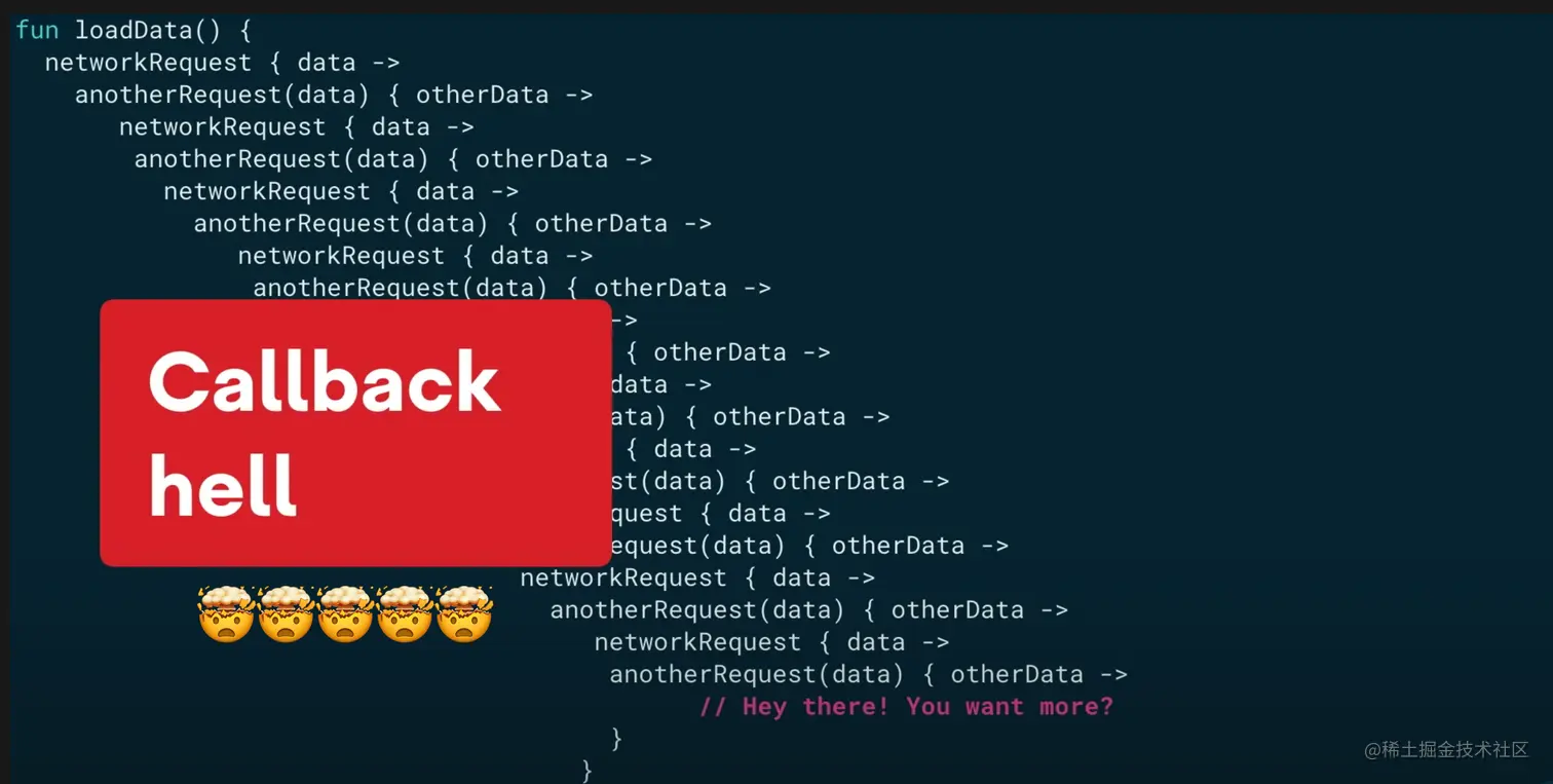 - 回调地狱版,必看🤯: Callback hell(🤯) killer —— Coroutines😊 .